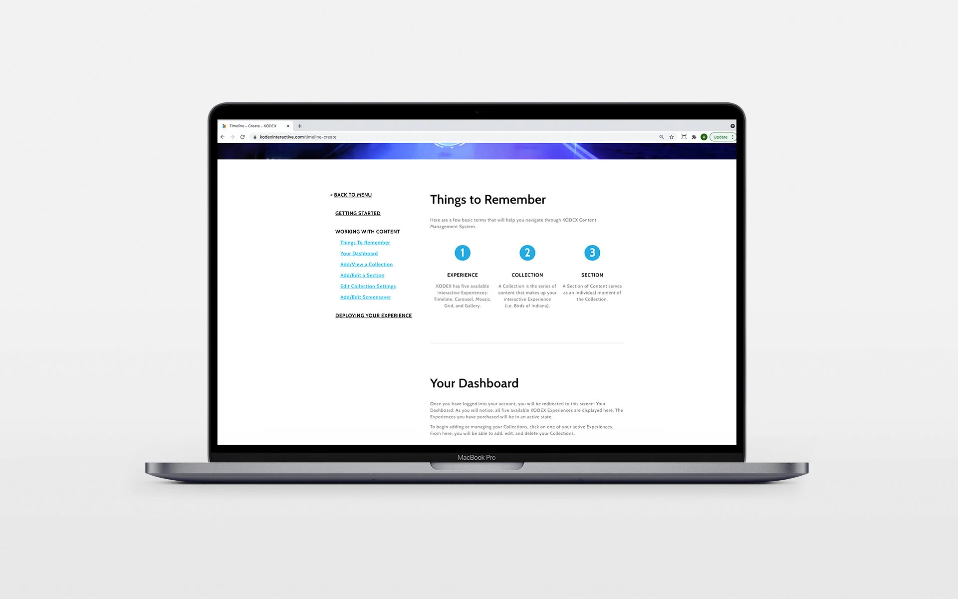 The User Guide is one of my most favorite accomplishments to date. We started with a PDF that was supplied to all of our customers. However, as the system grew, the User Guide also began to grow. Our initial concept with KODEX was to make customization a simple process, but a 100 page User Guide was anything but simple. So we did some research and found that a web-based User Guide would be a much more beneficial approach. I re-organized all of the sections and began to wireframe the new User Guide. To make things even easier for our clients, we decided to take small videos of some of the more complicated sections within the User Guide so there would be a visual reference. Once we created this new User Guide, we eliminated almost all of our incoming questions and concerns from clients.